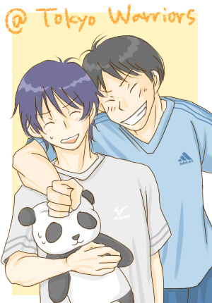 トシ&先輩@東京ウォリアーズ ウエヒラさん描こうとしてW杯編パラ見してたんですけど、寝違え云々のとこしか見つからなかったです(笑) なのですんごい適当。ま、先輩の誰かということで。 でもカミヒラさんではない。